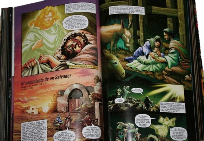 Cuenta con más de 200 historias emocionantes en orden cronológico, para ayudar al lector a comprender la fluidez histórica de la Biblia. Las ilustraciones han sido hechas por Sergio Cariello quien ha trabajado para Marvel y DC Comics.